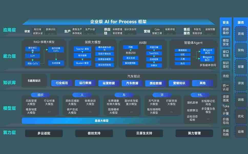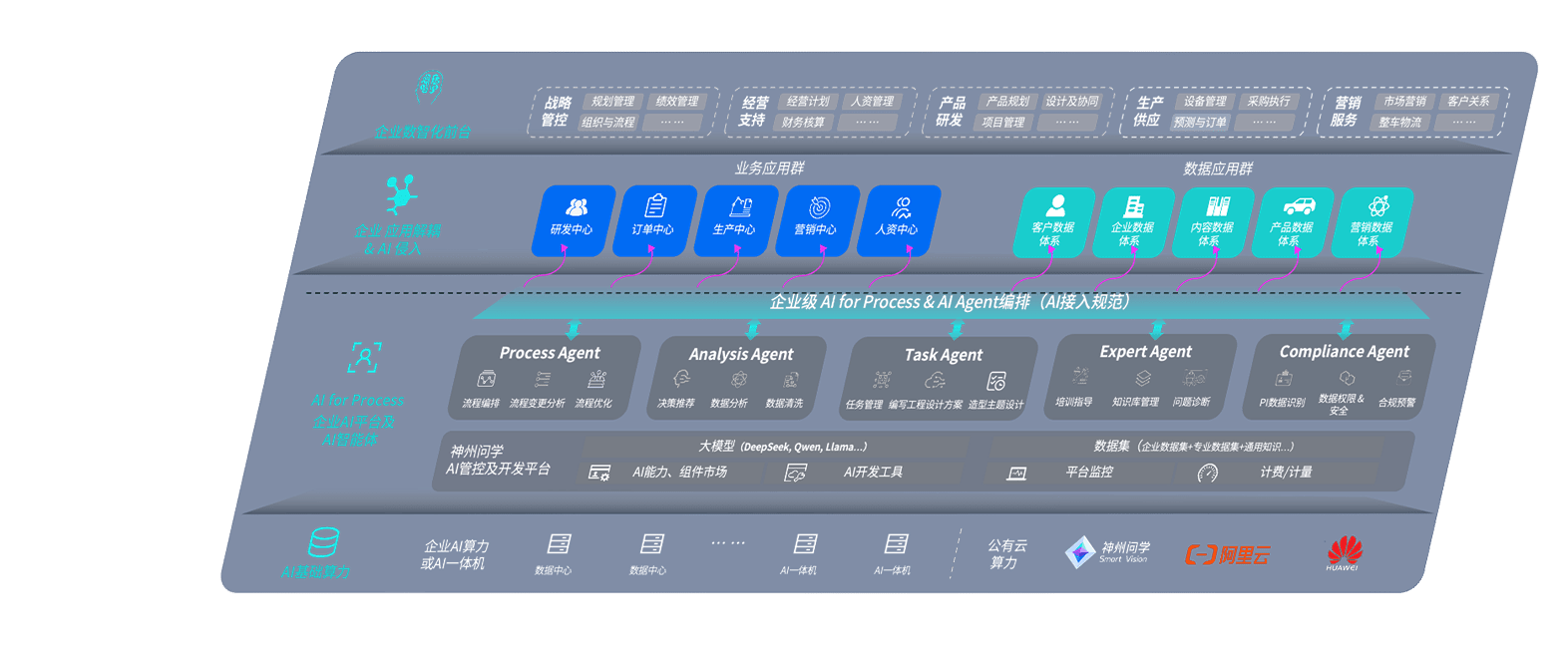 NG娱乐问学智车解决方案是一套基于AI技术的汽车行业智能化系统,,覆盖从底层算力到顶层AI应用的全栈方案。。方案由算力层、、、模型层和应用层组成:算力层,,,方案支持多种一体机配置,,具备云端灵活部署、、多云适配以及动态优化计算资源的能力;模型层,,NG娱乐问学平台版提供了企业级AI应用一站式构建与管理平台,,,,支持基于后训练强化技术的汽车企业专属模型的训练、、评测和运营;应用层,,NG娱乐问学DeepSeek版提供包括超级员工、、智能招采、、、、智能营销、、、智能客服、、、AI for BI等一系列解决方案,,,可助力汽车行业实现数字化转型,,让管理更智能、、响应更敏捷。。